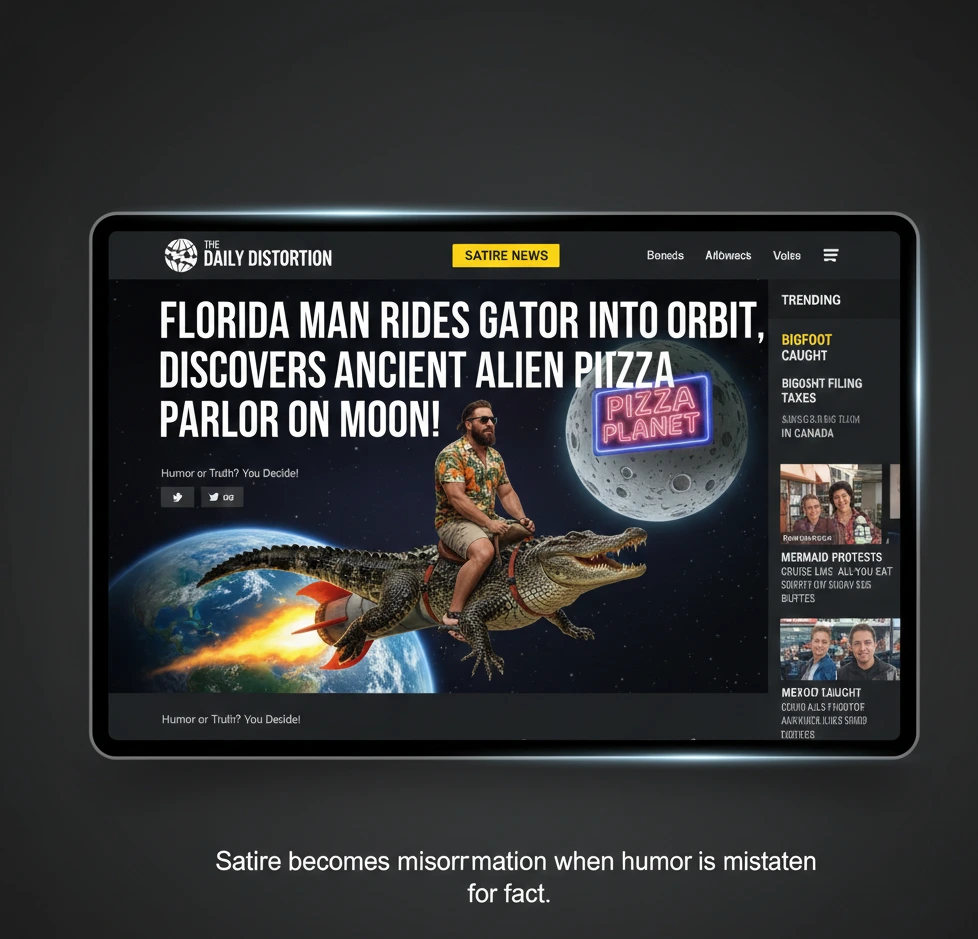 Satirical content is created for entertainment, not deception. However, when satire is shared without context, it can easily be mistaken for real news. Headlines written for humor often mimic journalistic language, making them believable at first glance.